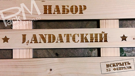 Компания «ПАК-М» предлагает клиентам персонализировать свою продукцию при помощи лазерной гравировки. Гравировка лазером может быть выполнена как на самом деревянном изделии, так и на вспомогательных декоративных элементах, изготовленных из металла, пластика, стекла и т. п. Возможно также создание уникальных изделий, искусно вырезанных лазером из дерева и его производных (фанеры, ДСП и т. п.)